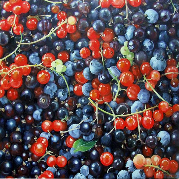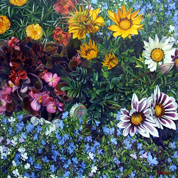 I paint leaves and foliage and all the messy chaotic bits of nature. All the paintings are oil on canvas.