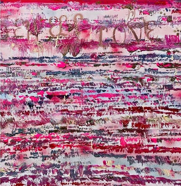 By combining many layers and thick brushstrokes using mixed media and the drip technique, she conveys emotion in all her works which is received by the viewer as intriguing and involving.