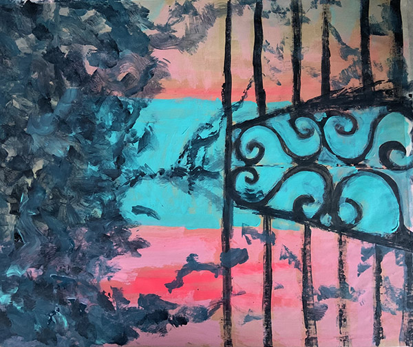 Predominantly figurative, her paintings are created in acrylics and mixed media, allowing her to achieve a sense of immediacy and urgency through expressive mark-making. Drawing inspiration from her surrounding coastal and forest landscapes, she weaves elements of nature into her work, creating an additional layer of depth and connection.