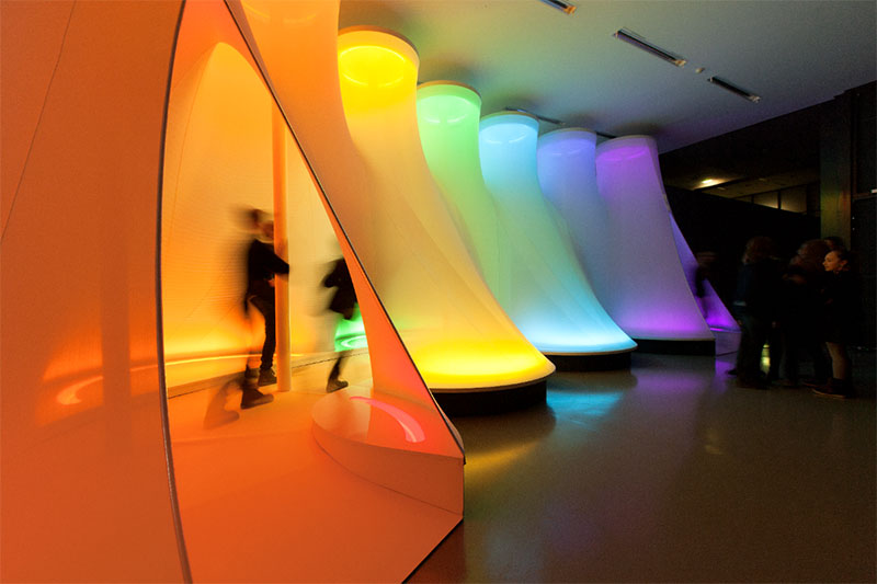 Spectrum, An Afterthought (1975–2014), one of Kasuba’s most significant spatial environments, will be displayed in its entirety. The work is a passageway comprising brightly lit, different coloured zones and is made of aluminium, neon, plastic, plywood, steel and tensile fabric.