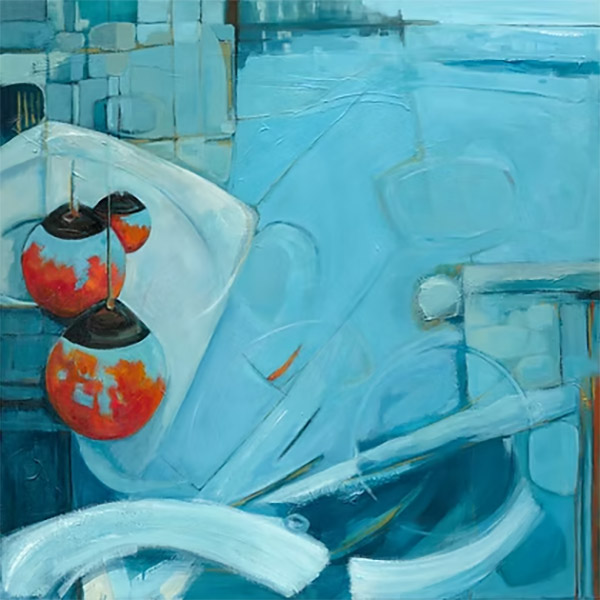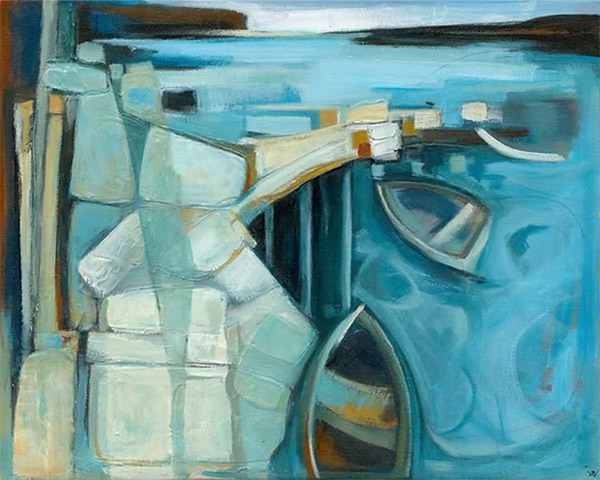 Being in Cornwall has given Liz a real connection with the artists that had already been an integral part of her art practice. Enthralled by mid 20th Century design and modernism; the art of Peter Lanyon, Karl Weschka, Paul Fieler, Sandra Blow and themes in 50/60’s design motifs; help structure her shapes and forms she sees repeatedly within her subject matter.